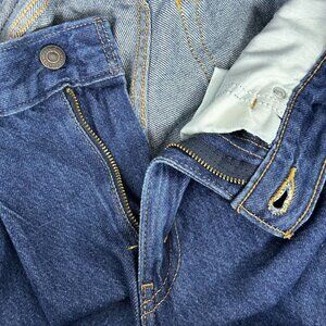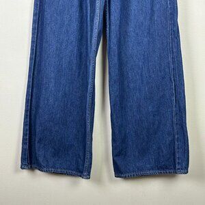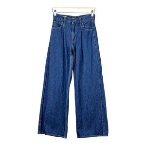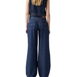 Levi's Baggy Dad Wide Leg Premium Denim Jeans. Dark wash. Zip and button close. 5 pocket design. Front pleats. Mid rise. Wide cut straight leg. Baggy relaxed fit. Slouchy through the hip and thigh. Materials: 100% Cotton. No stretch. No known flaws.
