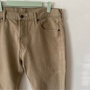 Classic button-fly Levi's with some minor ware, most notably on the patch on the back and some minor piling on the crotch. In very good used condition.