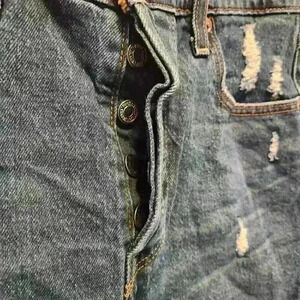Get ready for your next adventure with these Levi's Big E Ribcage Shorts. Made with durable denim fabric and featuring a medium wash, these shorts are perfect for travel and casual occasions. The high-rise waist and cut-off style provide both comfort and style, while the button closure adds a touch of classic Levi's detailing. These shorts are available in size 26, making them a great fit for many body types. The solid blue color and ribcage detailing add a unique touch to these versatile shorts. Whether you're heading out on a day hike or running errands around town, these Levi's Big E Ribcage Shorts are the perfect choice.