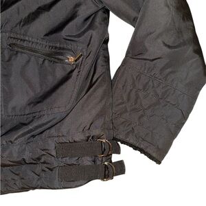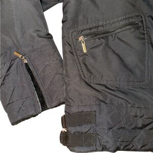 Stylish Levi's bomber jacket in classic black. Features a cozy fleece collar. Ideal for chilly days.