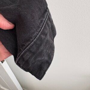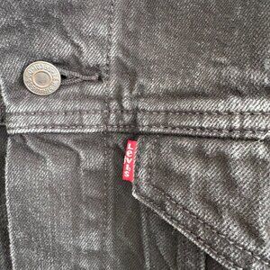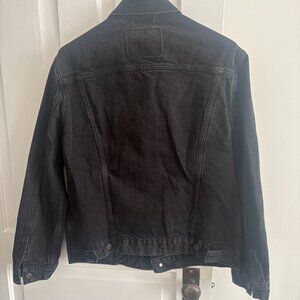 Levi's black denim jean jacket. Size L on tag. Measurements: chest - 21.5", shoulder 19", sleeve 24.5", length 25". very good condition. Looks great.