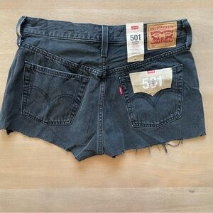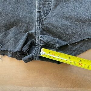 Chic black jean shorts by Levi's. Perfect for casual outings. Stylish and comfortable.