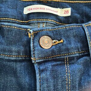 Levis Blue 724 High Ride Straight Jeans Size 28