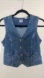 Stylish blue denim vest with button closure. Features front pockets with adjustable back.
