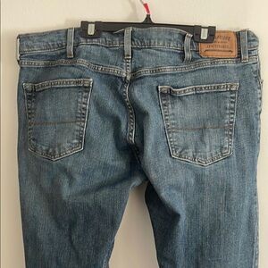 These Levi's blue relaxed jeans offer a comfortable fit with a medium to dark blue wash and subtle fading for a casual, worn-in look. The denim is of medium weight, providing durability and a soft texture, perfect for everyday wear.