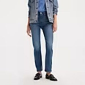 Classic Levi's straight leg jeans. Button fly closure. Timeless blue denim.