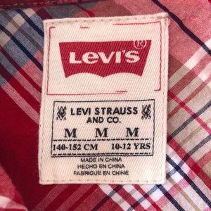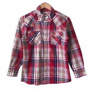 Boys’ size M Medium 10-12 Levi’s plaid long sleeve shirt. Red, tan, white, navy blue. Western. Excellent condition.