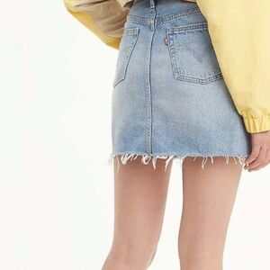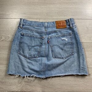 Levi’s Button Fly Raw Hem Distressed 100% Cotton Jean Denim Mini Skirt