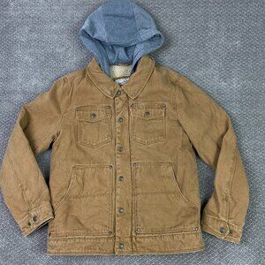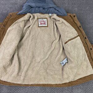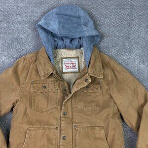 Levi's Canvas Jacket Men's Small Tan Khaki Sherpa Fleece Lined Hooded
