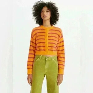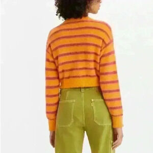 Levi's Cat Cardigan Sweater Fuzzy Size M Orange Purple Stripes Button-up
