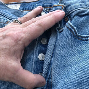 Levi's Classic Blue Jeans straight leg/ 26 by 28, red tab 501 skinny, like new