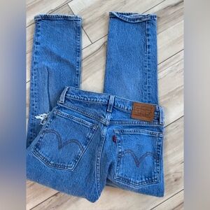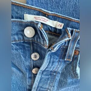 Experience timeless style with these Levi's blue straight leg jeans, crafted from premium denim for lasting comfort. The subtle distressed detailing adds a modern twist to this classic design, making them a versatile addition to any wardrobe.
