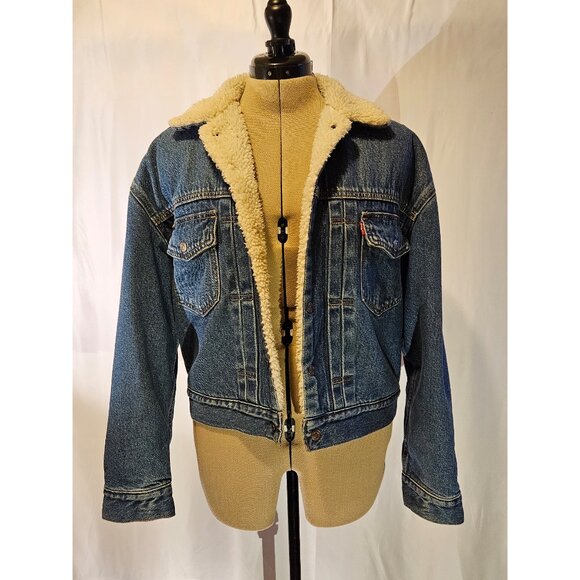 Levis Cottonized Hemp Heritage Sherpa Trucker Jacket, Hot Head Medium Wash, SM.