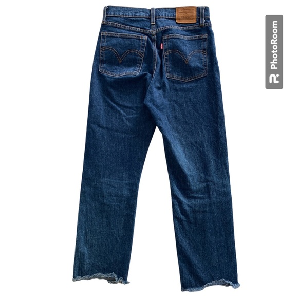 Levi’s Dark Wash High Rise Wedgie Straight Jeans Raw Hem Size 26