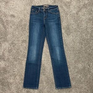 Levi’s Demi curve classic straight leg, size 25. Mid/darker wash. Button and zip up, belt loops. Front and back pockets. In excellent used condition.