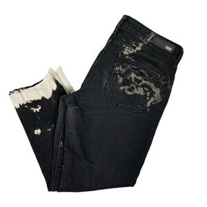 Black cropped denim jean with tie dyed frayed hem