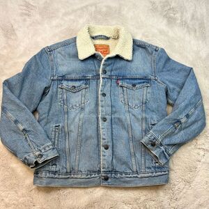 Levis Denim Trucker Jacket Womens Medium Sherpa Lined Collar Medium Wash Denim
