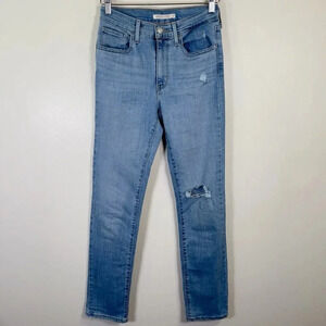Levi's Distressed Light Wash 724 High Rise Straight Jeans