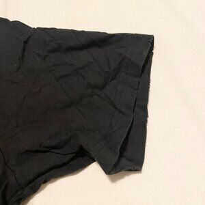 This shirt is pre-owned and in used condition. There is a distressed frilled finish on all the ends of the fabrics, around the collars, sleeves and bottom hem. It is wrinkled due to storage. Has a small stain on the inside. Please see all photos for exact item.