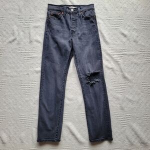 Levi's Distressed Wedgie Straight Leg Casual Everyday Coastal Denim Jean- Black