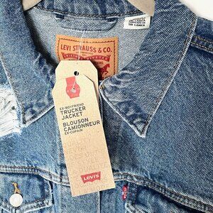 Levis Ex-Boyfriend Women's Distressed Destroy Retro Denim Trucker Jean Jacket