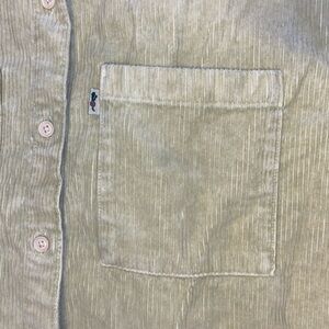 Brand new with tags, light green Levi’s cotton jacket. It has never been worn and is in perfect condition. Soft to the touch. It is a size extra small, but it is an oversized fit. Sustainably developed with natural dyes.