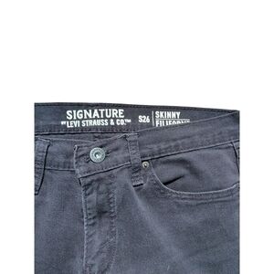 These Levi's jeans offer a sleek, slim straight fit in a versatile black color, perfect for a contemporary look. Crafted from high-quality denim, they provide both comfort and durability for everyday wear. The clean, uniform color adds a touch of sophistication to any outfit. Waist 32 and length 32.