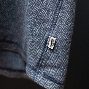 Levi's Heathered Blue Henley Size Medium. The button holes are a little worn but its still a great piece to be had nonetheless!