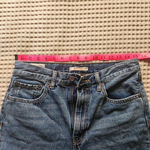 Levi's size 30. Photos of measurements (flat waist, hem, and rise) are included.