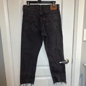 Stylish high rise jeans. Classic Levi's Wedgie Straight design. Frayed hem for a trendy look. Rise is 12”. Inseam 25”. Waist 15”.