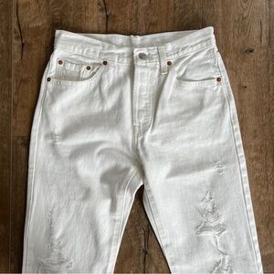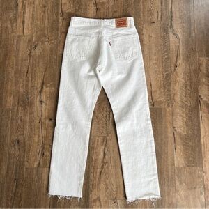 Levi’s High Rise Distressed White Denim Raw Hem Straight Leg Jeans