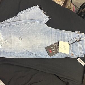 Chic high rise jeans by Levi's. Light blue hue. Ideal for casual wear.