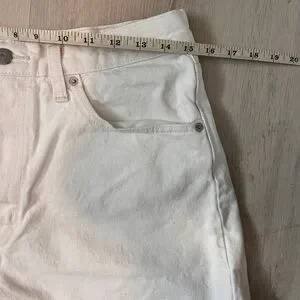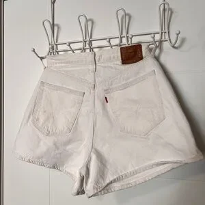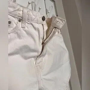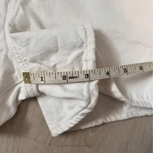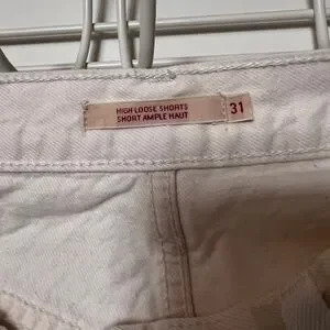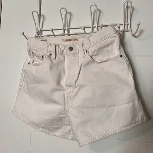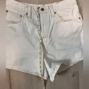 Let loose with this modern interpretation of a classic '90s style. These shorts have a relaxed fit and flattering high rise. Cool, vintage-inspired style. Waist-emphasizing high rise. A-line shape. They aren’t a starch white, but still clean with lots of life left. Waist size 31”, measurements in photos are an estimate. Inseam is about 3”. All Working pockets.