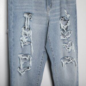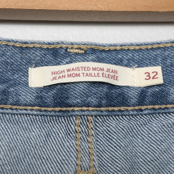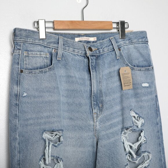 Levi's High Waist Tapered MOM Jeans Tapered 100% Cotton Blue Denim Destroyed Rip Knee 32