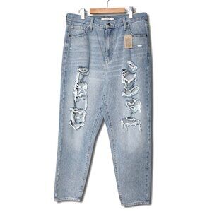 Levi's High Waist Tapered MOM Jeans Tapered 100% Cotton Blue Denim Destroyed Rip