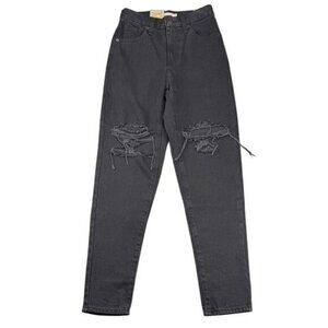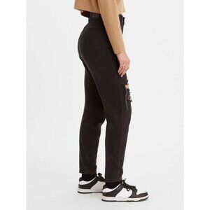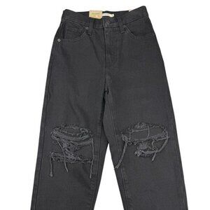 Levi's High Waisted Mom Jeans In Black Destructed Size 25 x 29