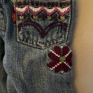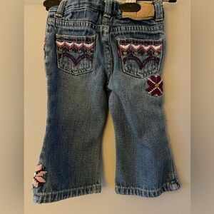 Levi’s brand. Absolutely adorable flower pattern blue jeans. With adjustable waist. 12 months.