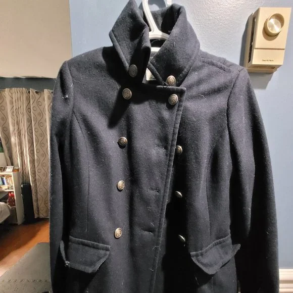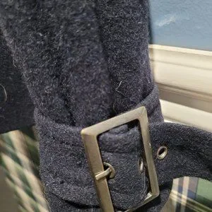 Navy blue Levi's jacket with belted arm cuffs - perfect for the fall season!