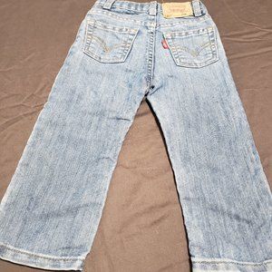 These Levi's are tough and built to last. They have a slim straight fit that gives a modern and stylish look. They are blue in colour and have a classic five-pocket design. They are in like new condition, with no signs of wear or tear. They are suitable for toddlers who are 24 months old. These jeans are a great choice for casual or formal occasions, as they can be paired with different tops and shoes. They are also easy to wash and maintain. These jeans are a must-have for your little one’s wardrobe.
