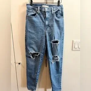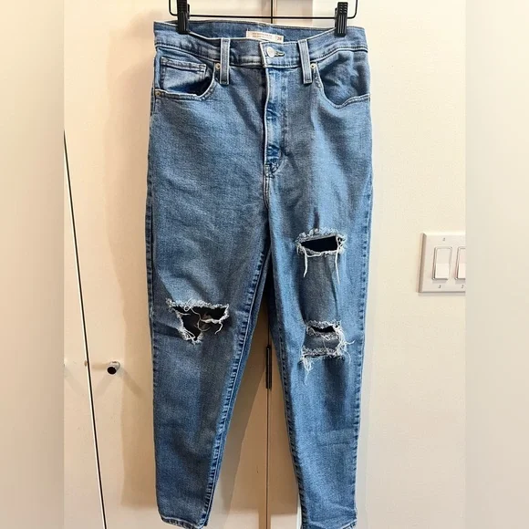 Levi’s high waisted distressed mom jean Size 28 Excellent used condition Inseam is approx 27’ inches.