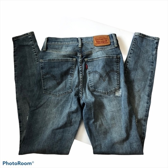 Levis Jeans Mile High Super Skinny High Rise Light Wash Distressed Jeans