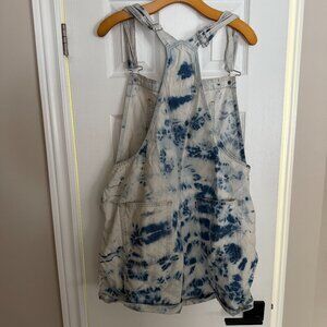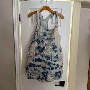 Levi's Women's Size Large Light to Medium Wash Tie Dye Vintage Shortalls Overalls, 100% Cotton, No Stretch, Pockets, Rollable (Unrolls)