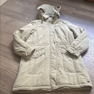 Stay warm and stylish with this women's hooded beige jacket. Perfect for chilly days and to wear with anything.