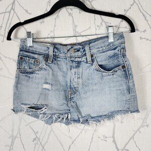 Levi's Light Wash Distressed Ripped High Rise 501 Shorts