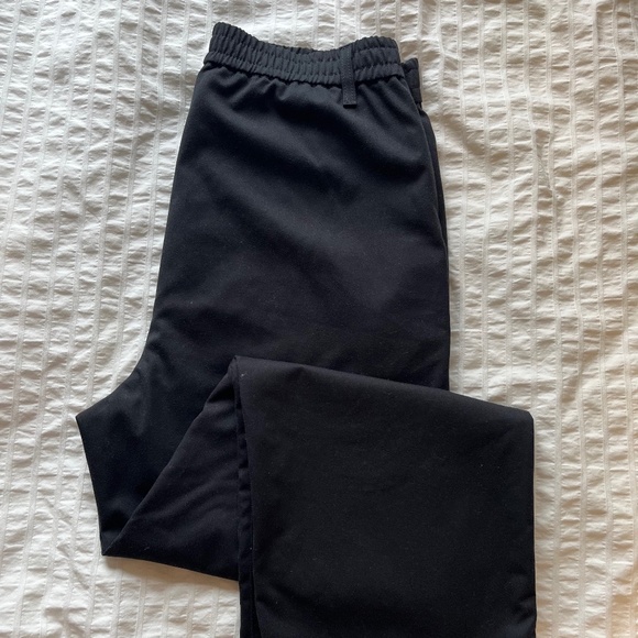 Black, straight leg, cropped pants.