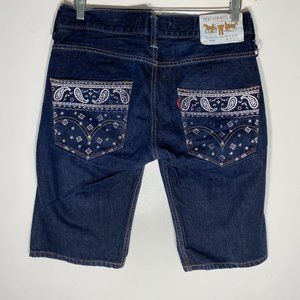 Levis Men Jean Shorts 504 Straight Dark Wash Paisley Pockets Denim Blue Sz 32x13
