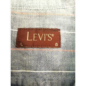 Levi's Men's Large Vintage Long Sleeve Oversized Button-Up Shirt in Gray with Blue Pin Stripes.