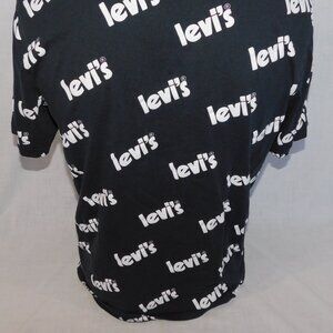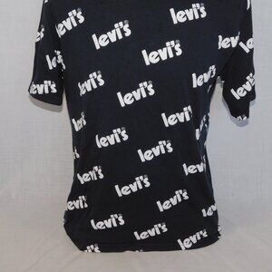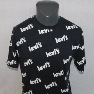 Levi's Mens M Black White Allover Spellout Print Short Sleeve T Shirt relaxed
