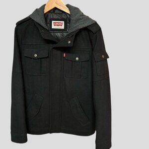 Levi's Men's Wool Blend Four Pocket Military Hoodie with Jersey Hood