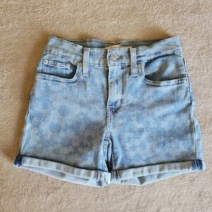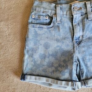 Denim shorts with rolled hem and daisy pattern. In very good used condition